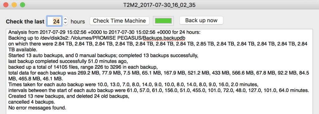 I therefore conclude that, whatever changes Apple may have made in DAS and CTS in 10.12.6, they do not address the bug, which continues to cause Time Machine backups and seventy or so other scheduled background activities to become irregular and unreliable. This in turn makes Sierra 10.12.6 unsuitable for use on server and other systems which require sustained operation, unless they can be restarted every few days. Let’s hope that Apple gets round to fixing this properly in High Sierra.