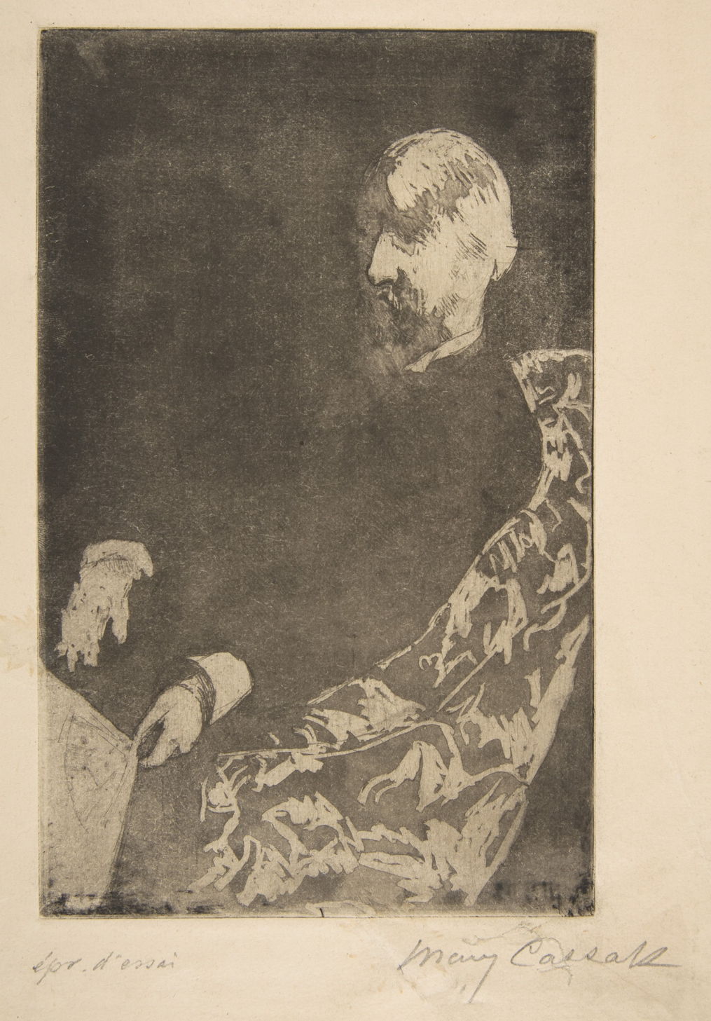 Mary Cassatt (1844β1926) worked hard to master her print-making techniques during the winter of 1879-80, under the guidance of her mentor and close friend Edgar Degas (1834β1917). Some of her incentive came from the collaborative project involving Degas, Cassatt, Pissarro, and others to produce a journal of their prints.