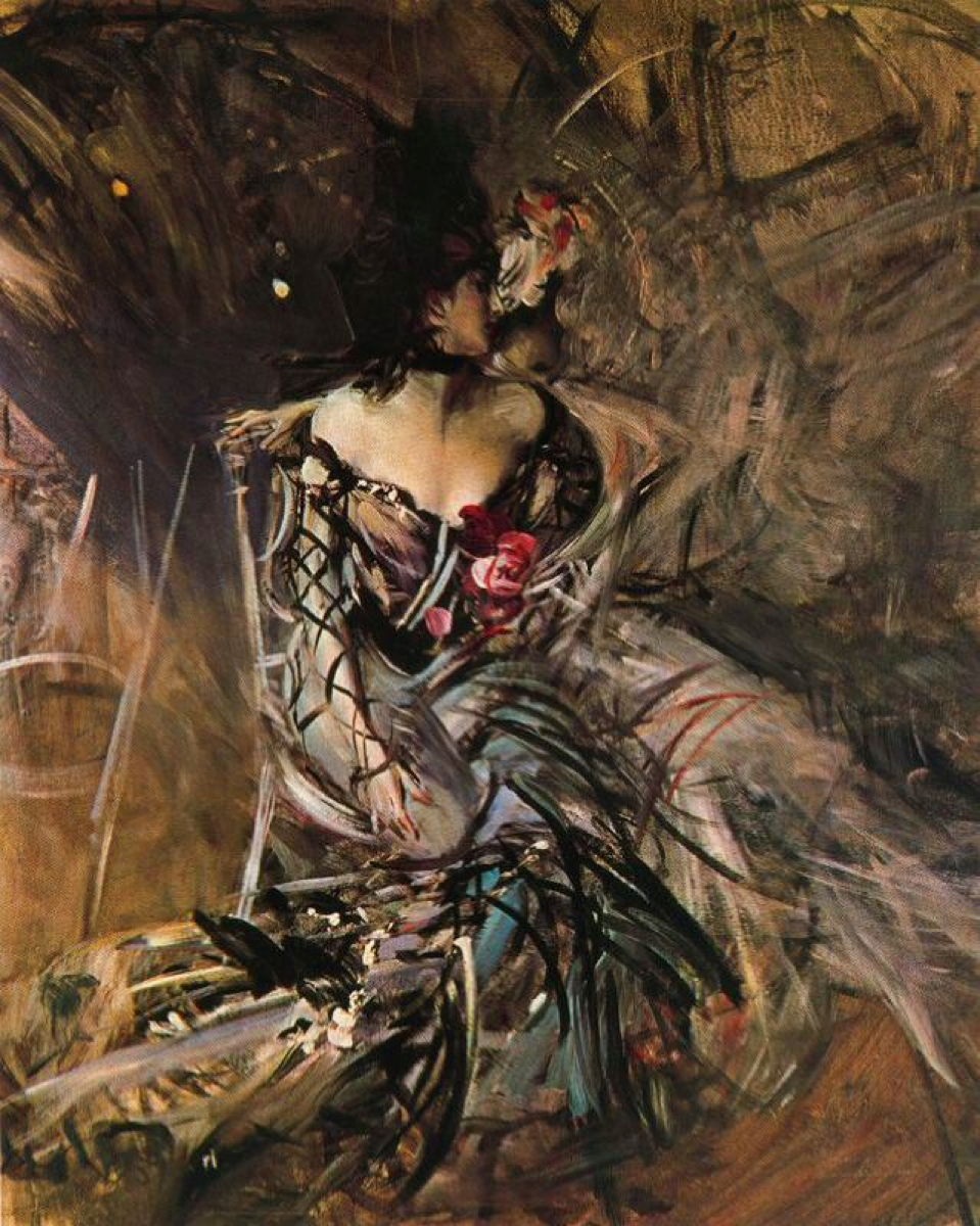 This was a natural theme for the ‘master of swish’ Giovanni Boldini, who was a good friend of Degas. Boldini painted a Portrait of Anita de la Ferie, ‘The Spanish Dancer’ (1900), above, and The Spanish Dancer of the Moulin Rouge (1905), below.