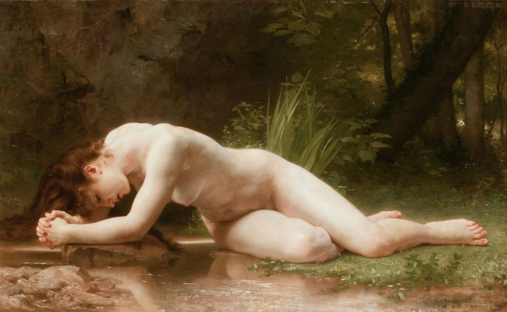 This is a smaller version of Bouguereau’s painting of Biblis from 1884, the larger one having been exhibited at the Salon in 1885. His spring is more substantial, but there is nothing to suggest that this was not just another carefully posed nude.