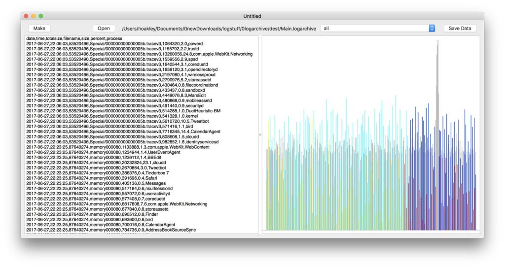 For anyone interested in macOS Sierra and High Sierra internals, or developing their own apps, the ability to browse quickly through many of the most important processes and look at these charts is fascinating. As Woodpile should work equally well with logarchives brought over from iOS, watchOS, and tvOS systems, this may be of great interest to those examining other Apple devices.