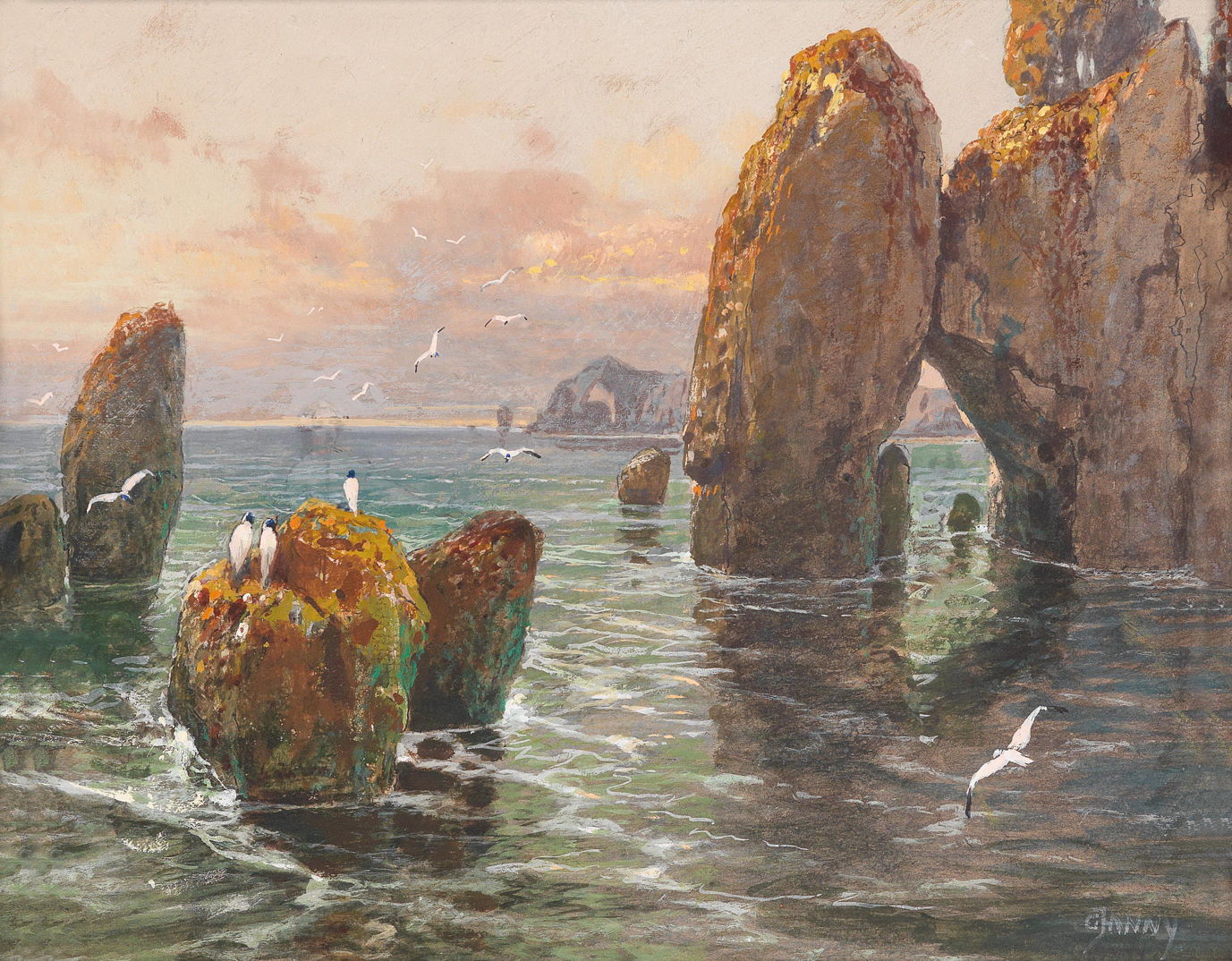 Some of his landscapes, such as his undated watercolour of a Rocky Coast, which he seems to have titled Merres-Joille, Evening, are what today might be termed fantasy art.