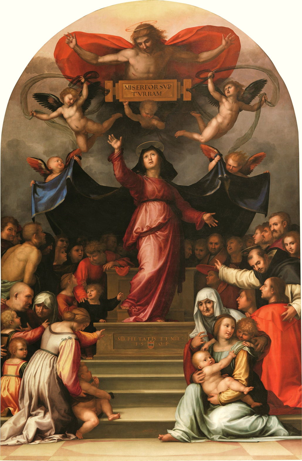 Fra Bartolomeo, Madonna della Misericordia (1515). One of his most populous works, with a rich and fascinating collection of figures, and an unusual composition.
