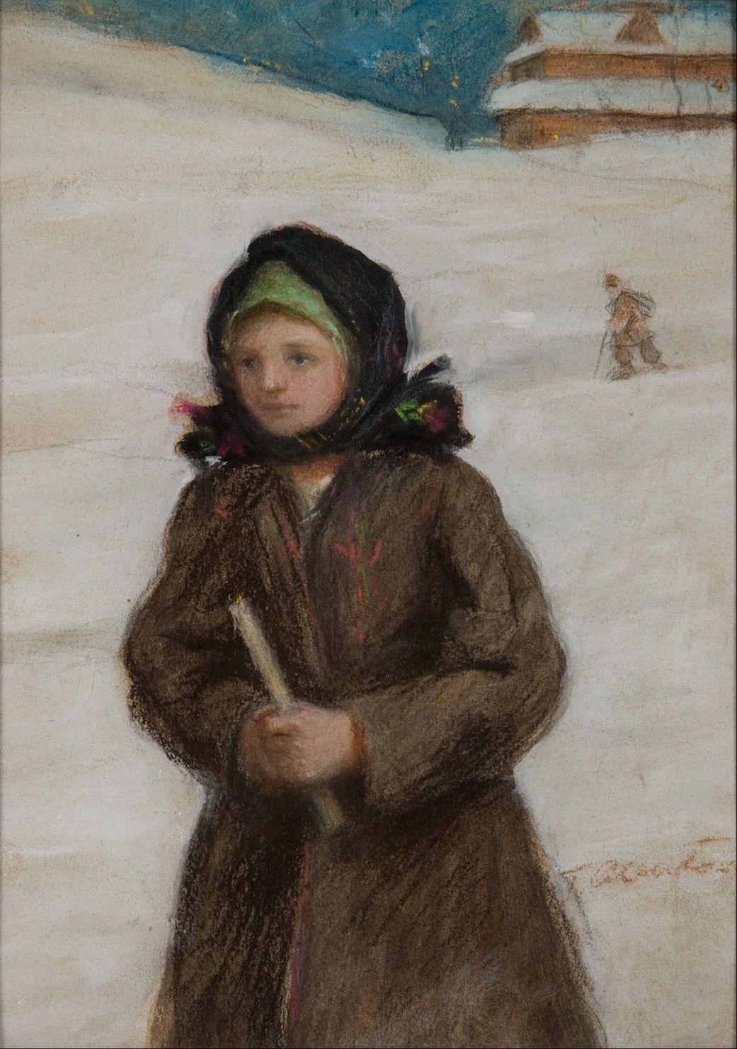 At the end of his training in Munich, Axentowicz paid his first visit to the lands of the Hutsul people, in the Carpathian Mountains of the Ukraine. Now numbering only about 25,000, they form a substantial proportion of Ukrainian highlanders, and have their own distinctive culture.