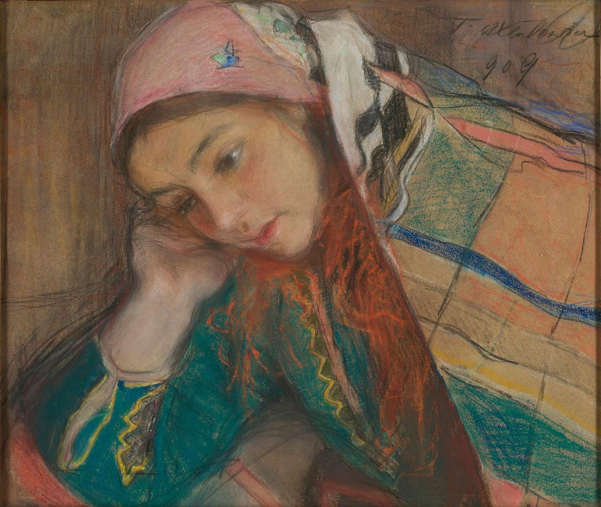 Axentowicz’s pastel portraits of young women in various types of dress are also quite unusual. This is a Portrait of a Girl dressed in Krakow from 1909.
