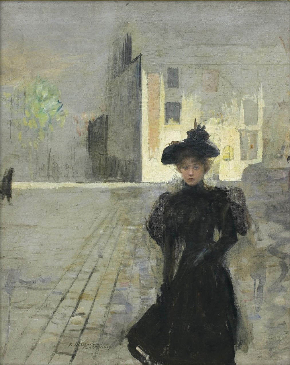 Teodor Axentowicz (1859–1938), Samotna w mieście. Paryżanka (Alone in Paris) (1887), oil on canvas, 55.3 x 46 cm, location not known. Wikimedia Commons.