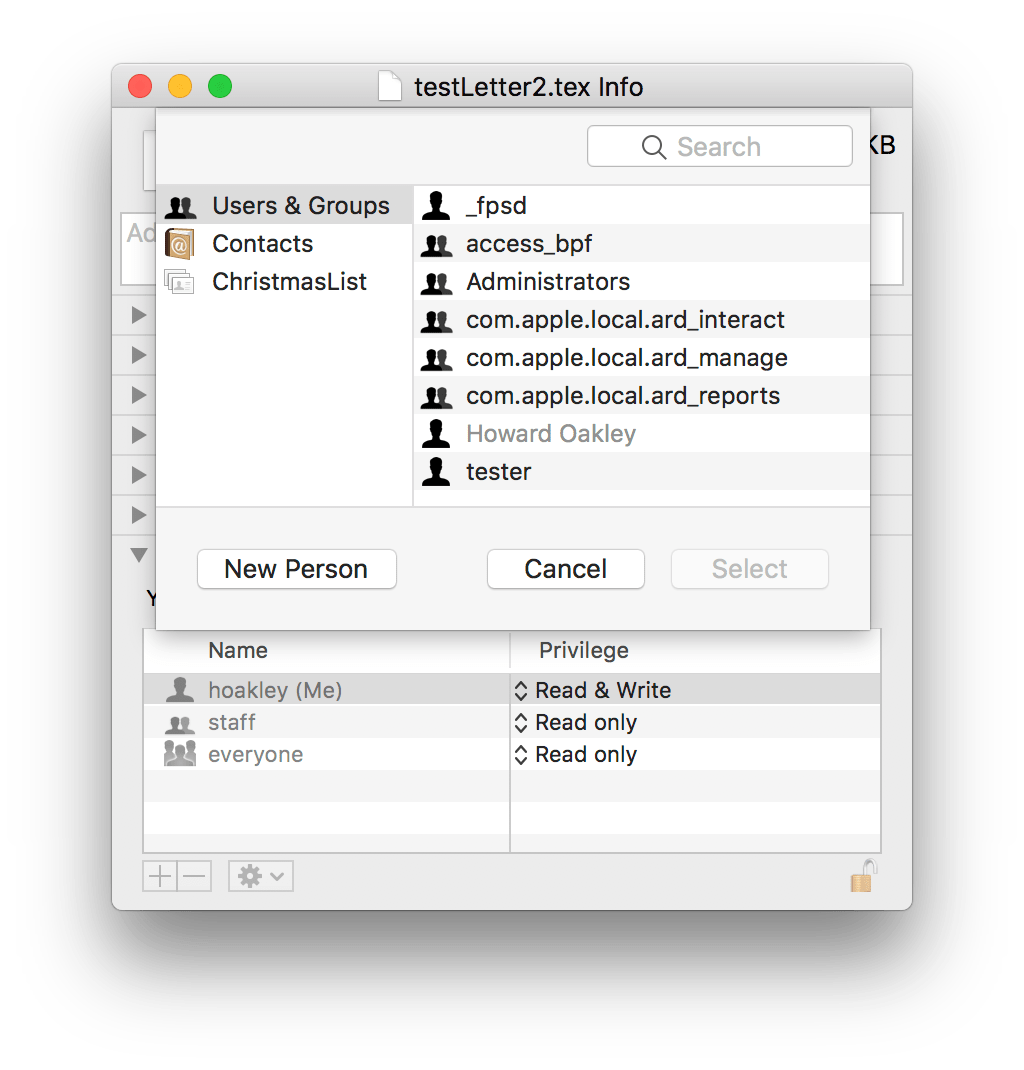 Last week, I looked at changing the permissions of a file or folder, both using the Finder and in the command line. Permissions are granted on the basis of the item’s owner and group, so this short article looks at how you can discover lists of owners and groups, and how to change the owner and group of a file or folder – another basic user skill.