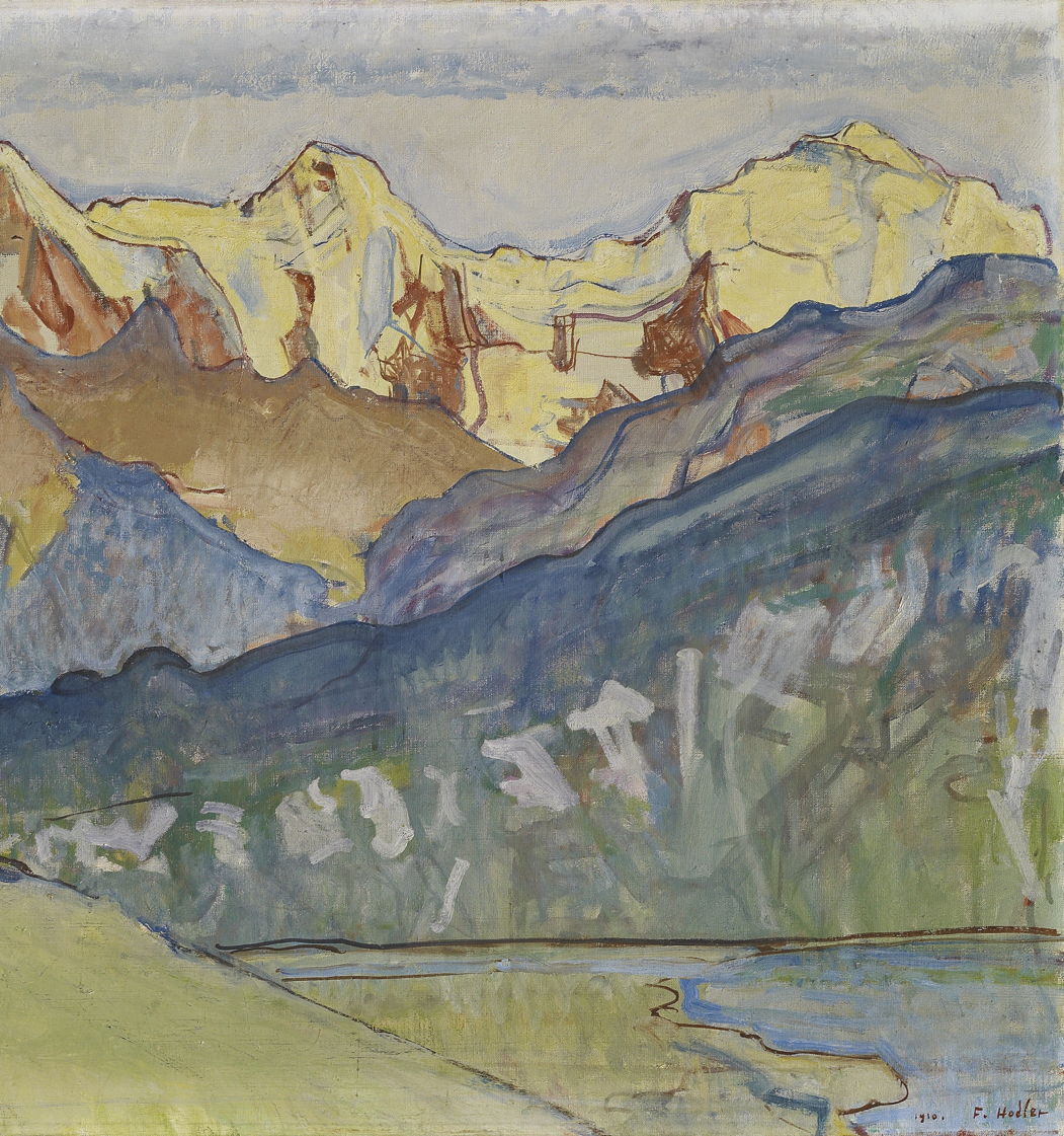 In the summer of 1910, Hodler was again busy painting landscapes in the Bernese Oberland. In Lake Thun with the Stockhorn Range (1910), he is on the north-eastern side of the lake, probably not far from the town of Thun, looking to the south-west over the lake at the Stockhorn and its lofty ridges.