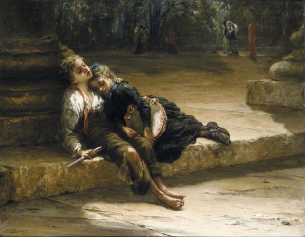 There have always been people who are poorer than poor, and have nothing more than they stand in and carry. They made occasional appearances in paintings, but most artists carefully ignored them, until the late nineteenth century. Like so many of the poor, they were drawn to the cities, where they tried to live on the streets, and in derelict buildings, moving on when forced.