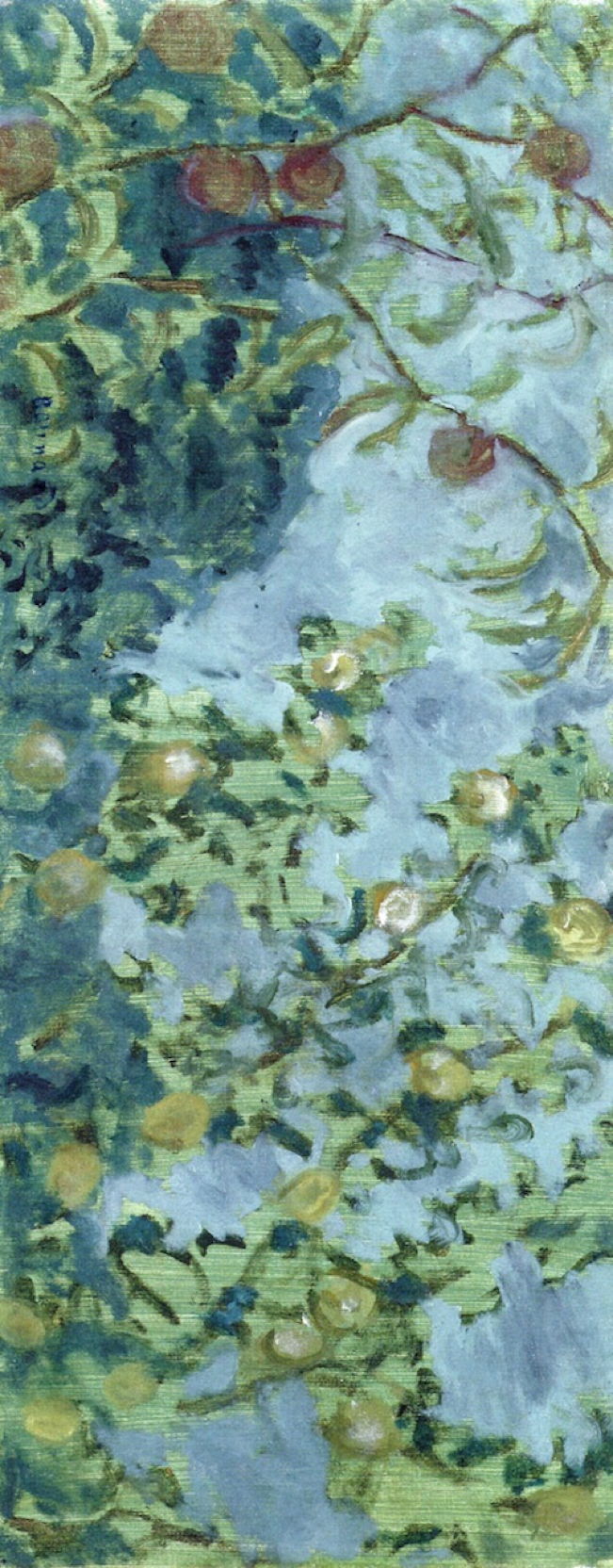 Neither had Bonnard cast aside his Japonisme. Flowered Branches (c 1899) is painted as if it was a hanging silk scroll or a panel from a screen, with the popular Japanese Spring motif of the blossom on trees.