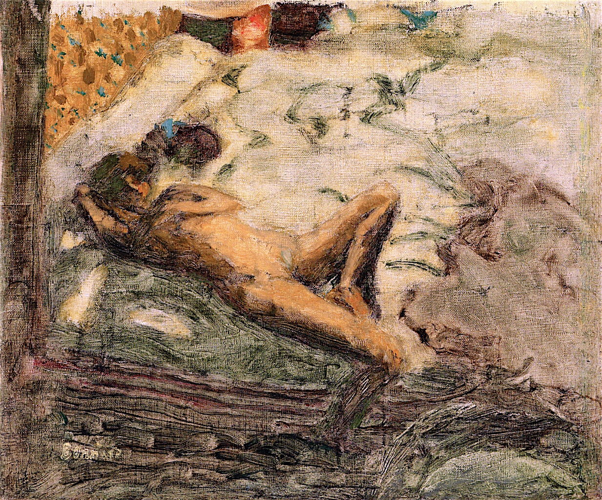 Following from Man and Woman in an Interior, Bonnard’s first painting of Marthe nude is this study for Indolence made in about 1899.