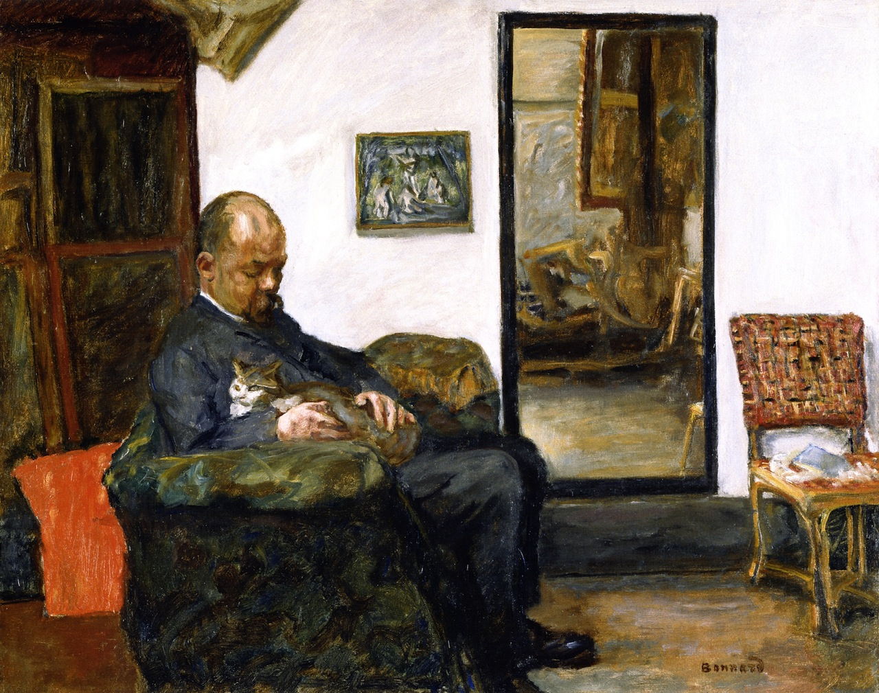 Bonnard’s portrait of Ambroise Vollard (c 1904-05) shows one of the most important art dealers of the time, embracing his cat. Vollard lived between 1866-1939, and brought Bonnard valuable work, including the illustrations he had made in 1900 and 1902. He was killed in mysterious circumstances when his car left the road, just a few weeks before the start of the Second World War. Although his portraits by CĂ©zanne and Renoir are well-known, Bonnard’s has remained a well-kept secret.
