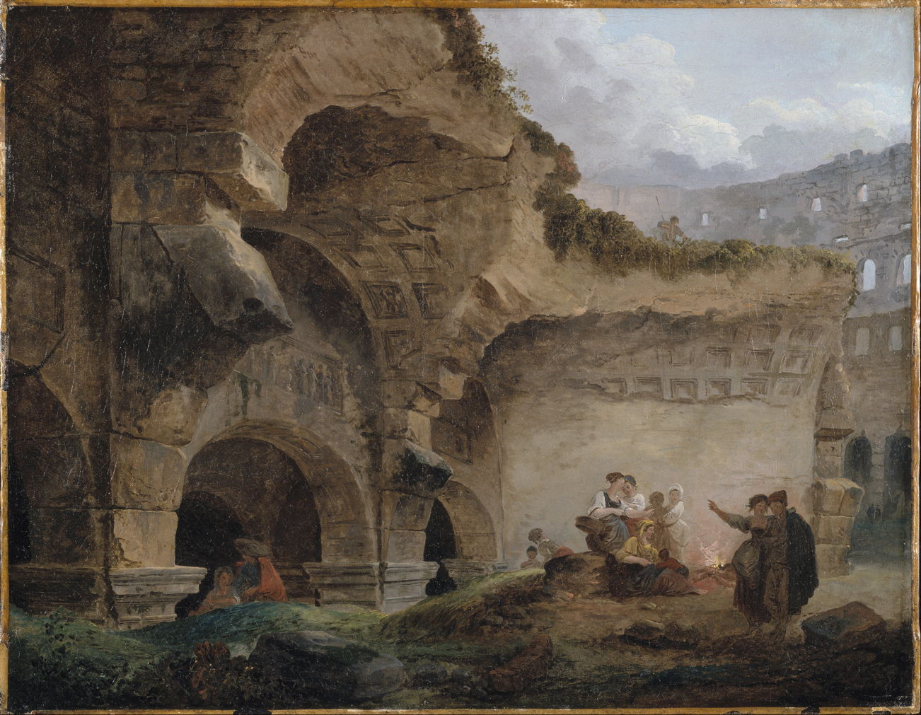 It was a popular motif for the landscape artist visiting Rome, and for Hubert Robert it offered an unusual genre opportunity, in his Washerwomen in the Ruins of the Colosseum (c 1765).