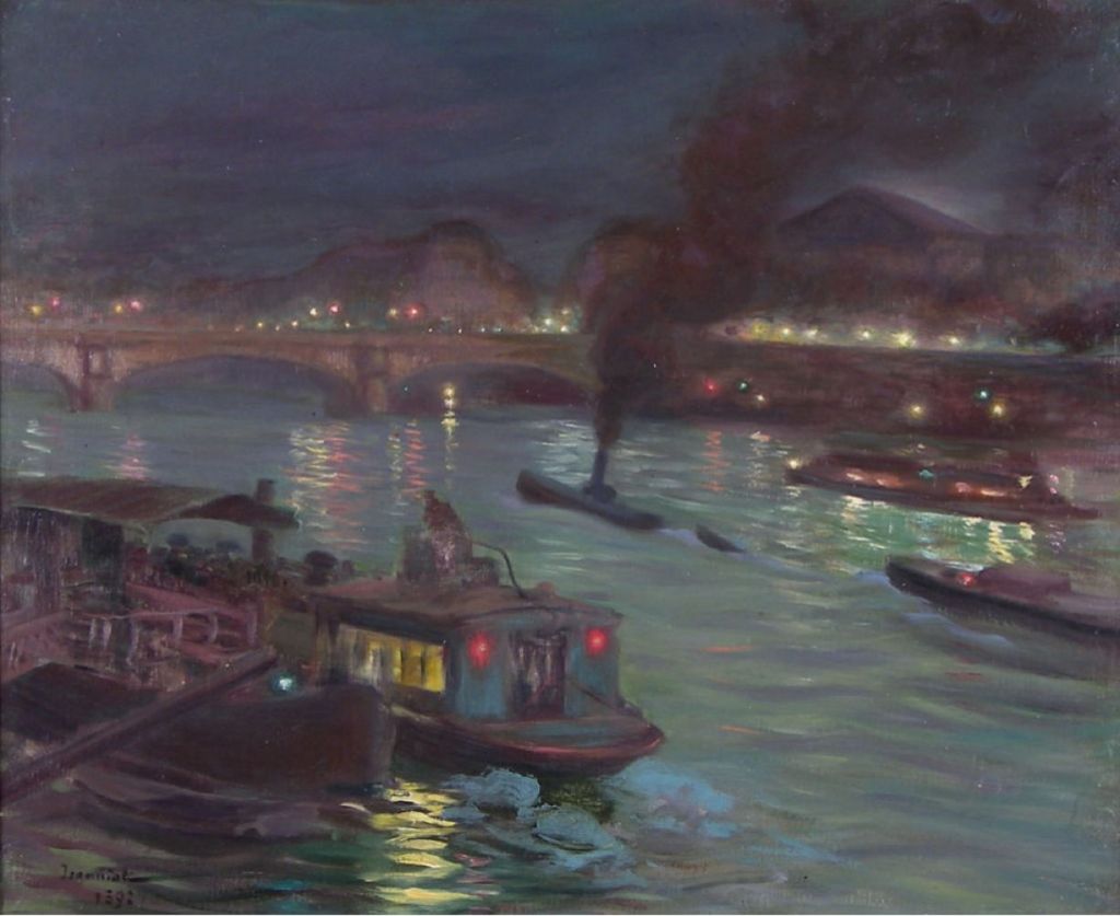 Night on the Seine (1892) is one of the finest of his works that I have been able to trace. It shows the river running through central Paris on a slightly foggy night, and plays skilfully with the effect of fog on lights, and their reflections. It is also very painterly.