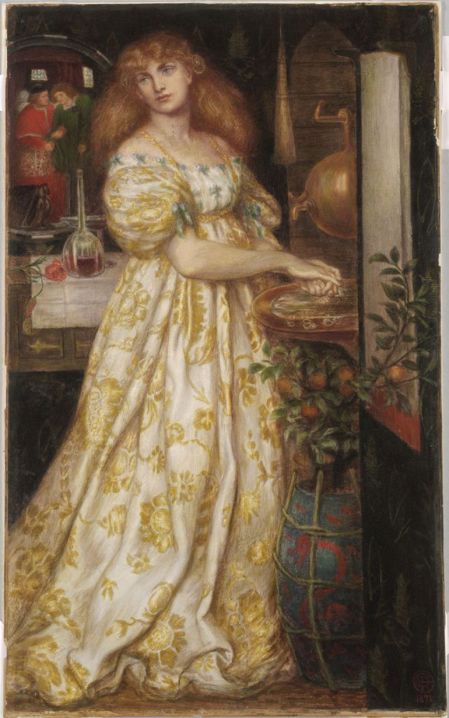 A powerful and well-educated woman, rumoured to have murdered one of her three husbands, painted at the time, and later by Dante Gabriel Rossetti.