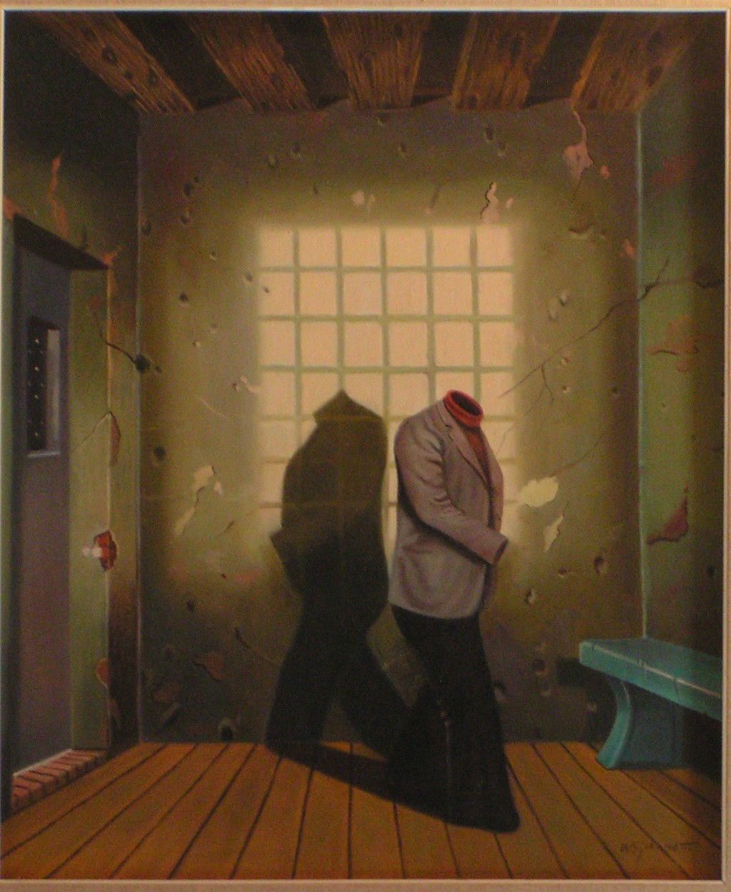 During the twentieth century, Surrealists and others have engaged in even greater shadow play. In William Girometti’s Life in the Reflection of Freedom from 1972, one shadow is cast from the bars of a window in a prison cell, the other is shown as a combined reflected shadow from the unoccupied clothing.