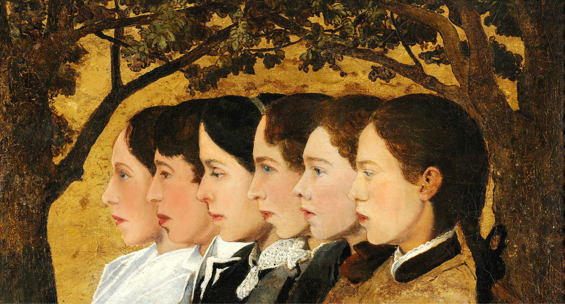 In 1898, Sigrid’s parents celebrated their silver wedding anniversary. For this, Ring painted this remarkable family portrait showing Six Portraits of Potter Herman A. Kähler’s Children. From the left are Sigrid, Herman Hans Christian, Hedevig, Ebba (seen in the first painting above), Elisabeth, and Stella. This may well have been influenced by some of the Renaissance multiple portraits which Ring must have seen when in Italy.