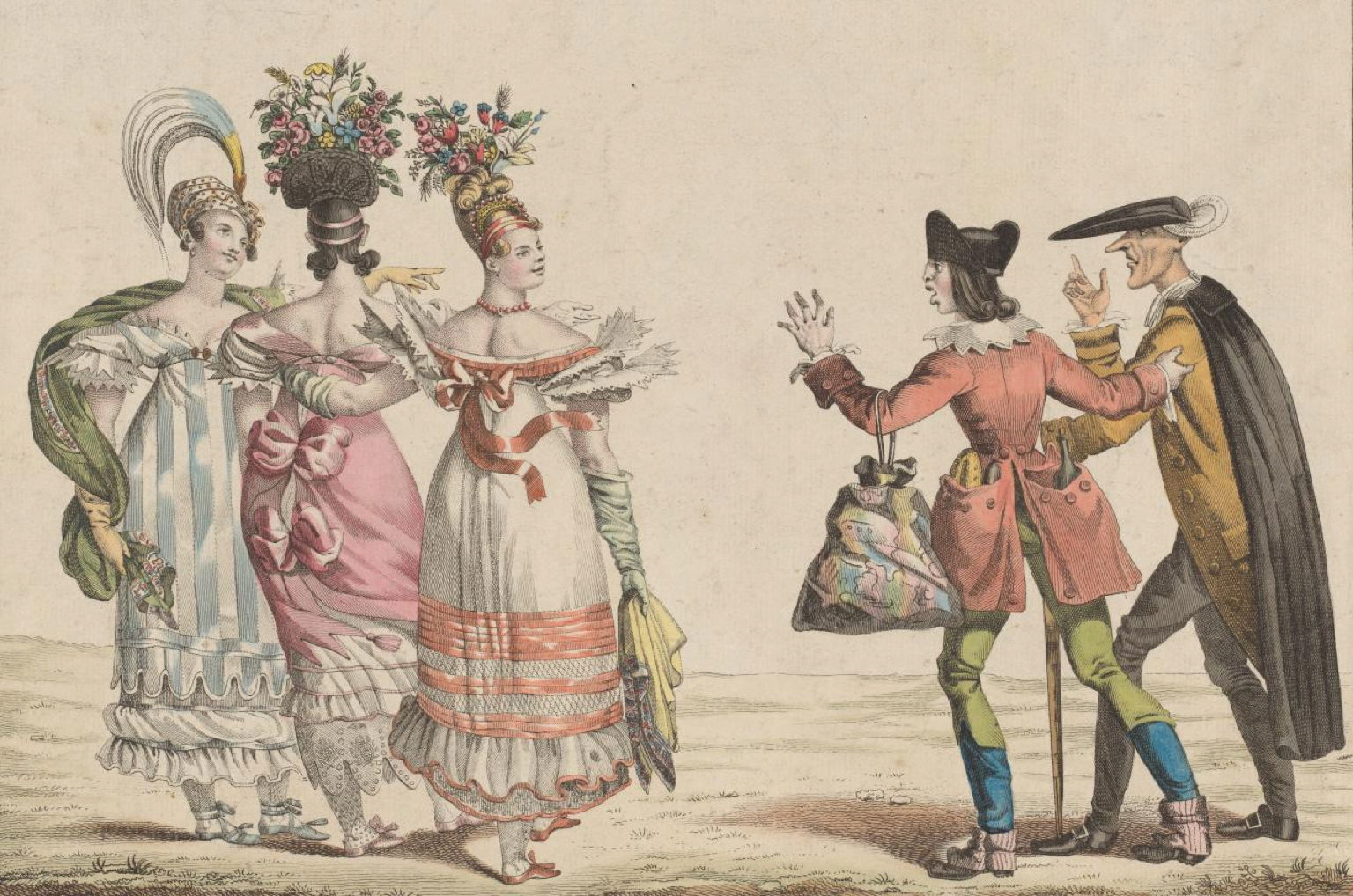 And here’s an undated hand-coloured print apparently based on another composition altogether.