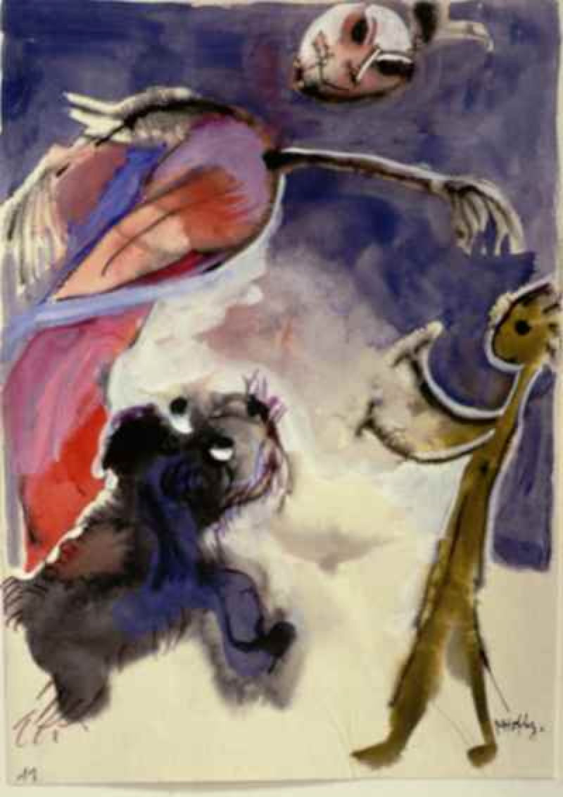Margret Hofheinz-Döring appears to have been the only artist who has painted this very visual moment, in her watercolour of Des Pudels Kern, which I think means roughly The Dog Transforms, from 1960.