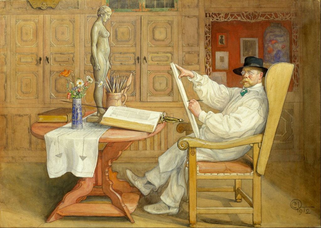 By the closing years of the nineteenth century, Carl Larsson (1853–1919) had established his reputation as one of the major artists active in Sweden. He had painted a series of frescos in the Swedish National Museum in Stockholm, and his watercolours showing idyllic family life were catching on too.