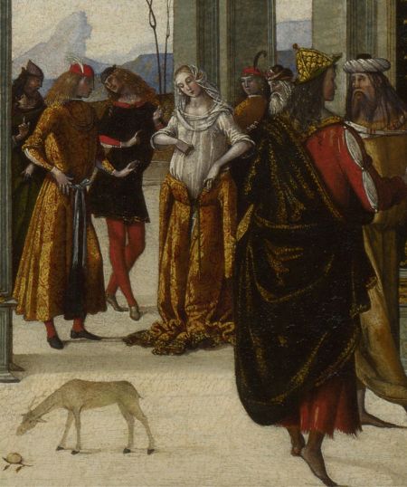 The last story of the last day tells of a bride and mother who undergoes the senseless brutality of her husband, and three superb narrative panels telling the story.