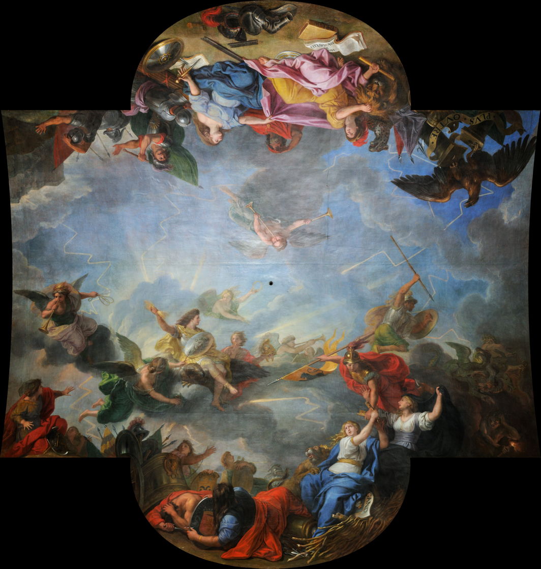 The Capture of the City and Citadel of Gand in Six Days, 1678 painted between 1681-84 is one of his works in the Hall of War, and shows the brief attack on the Belgian city of Ghent, I believe.