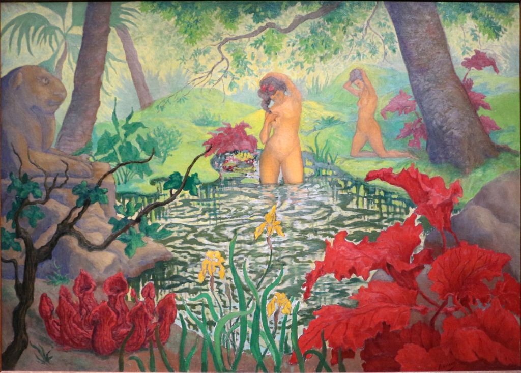 Ranson’s Bathers from about 1906 is another late variation on the same theme, which adds a Sphinx at the left and strong colour contrasts in red and green.