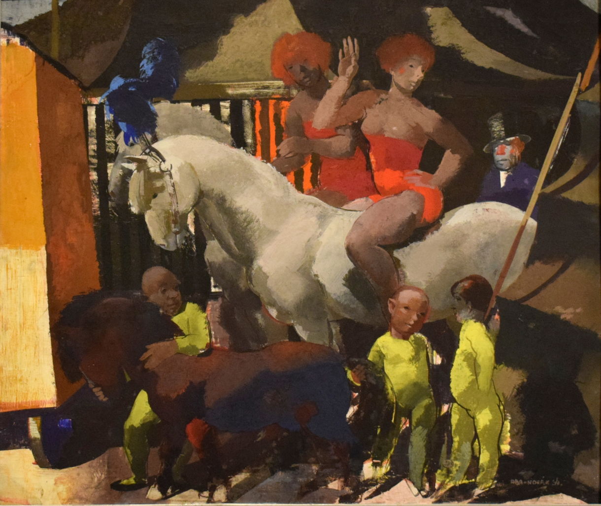 Aba-Novák’s later Before the Show from 1934 shows another eclectic mixture of horsewomen, ringmaster, and ‘midgets’ waiting to enter the ring.