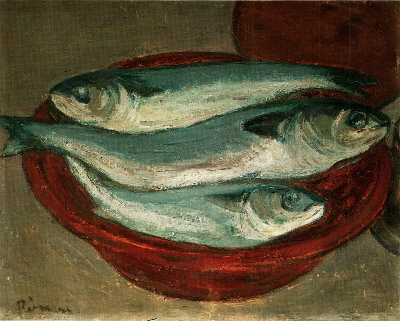 By the end of the nineteenth century, in paintings such as this marvellous still life of Fish from about 1898, Rippl-Rónai remained at heart a realist who if anything was still pre-Impressionist.
