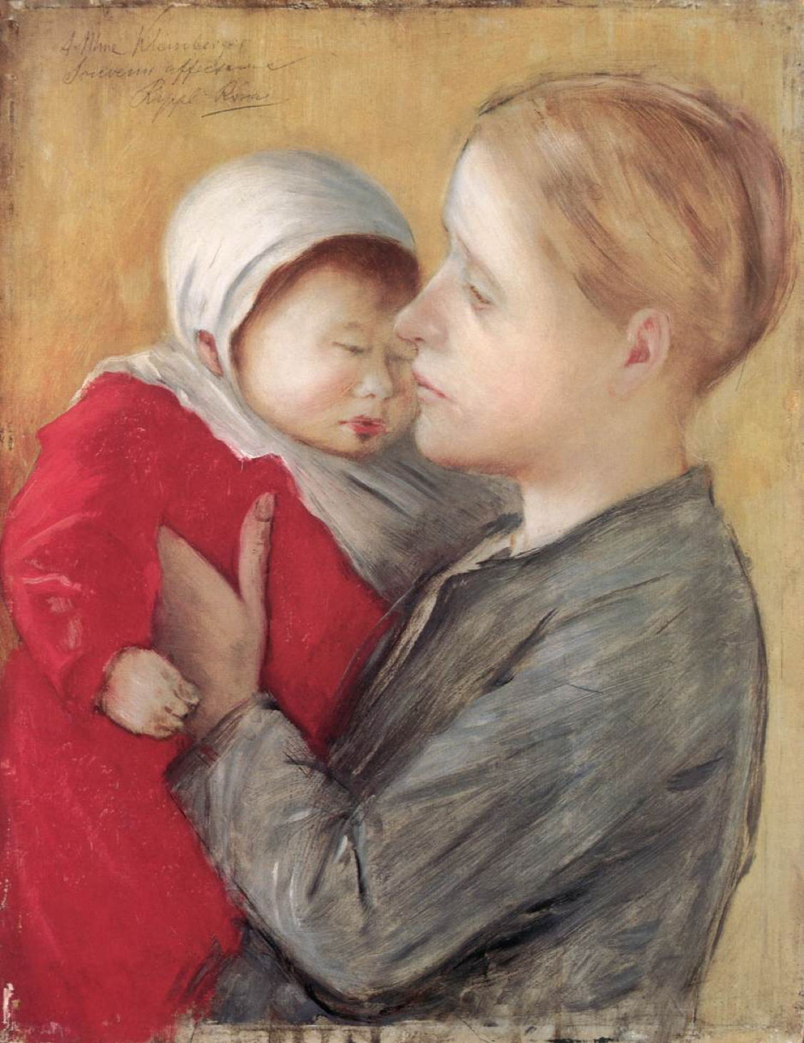 By 1890, he still maintained his realist style, as shown in this sensitive portrait of a Mother with Child.