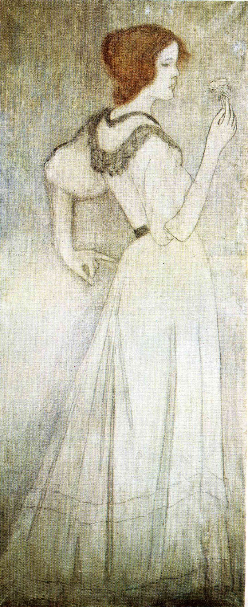 This study for a full-length portrait of a Woman with a Rose, also from 1892, has been sketched in with diluted paint.