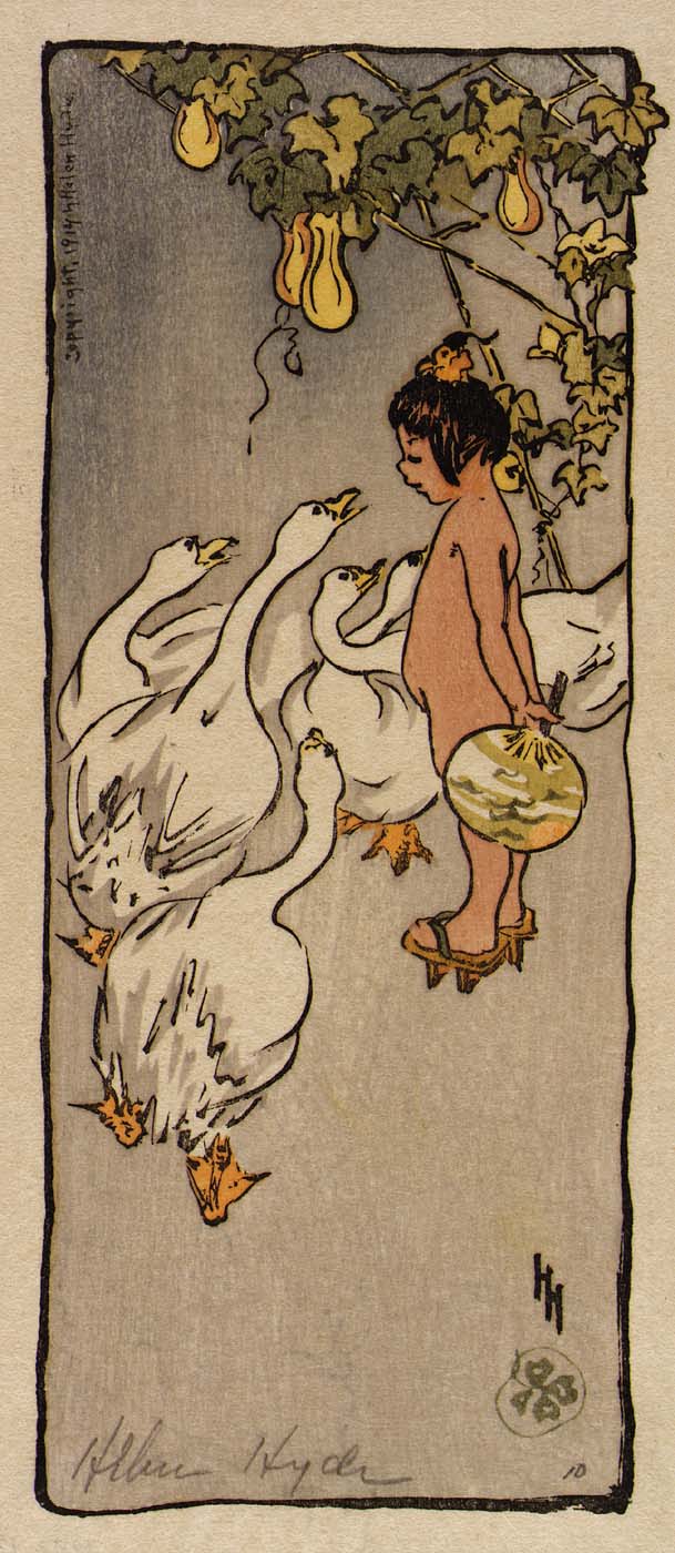 I showed yesterday this print of hers of a young Japanese girl arguing with her geese in Complaints from 1914.