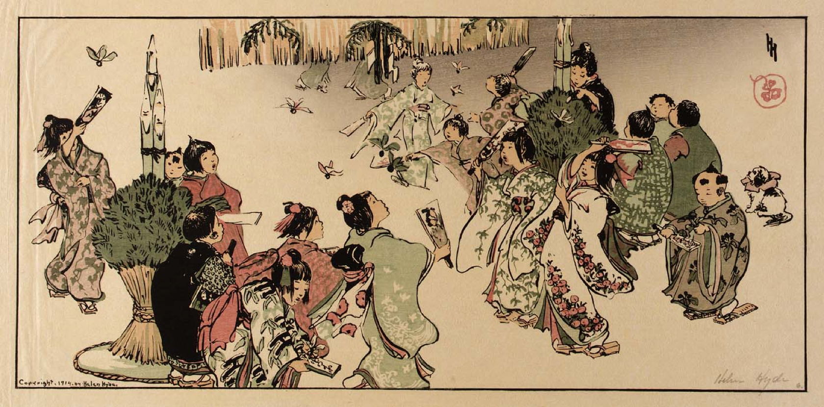 She made friends with an unrelated namesake, Josephine Hyde, and in 1899 the two travelled to Japan to learn from Japanese print and painting techniques. Helen Hyde was soon working with woodblock prints, which she learned from the Austrian Emil Orlik who was living in Tokyo at the time.
