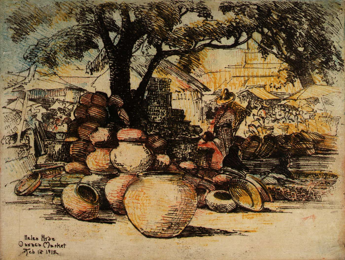 Oaxaca Market, also from 1912, is one of the most Mexican of her prints from this visit, and appears to have been made from a plein air sketch made on the first of February that year.