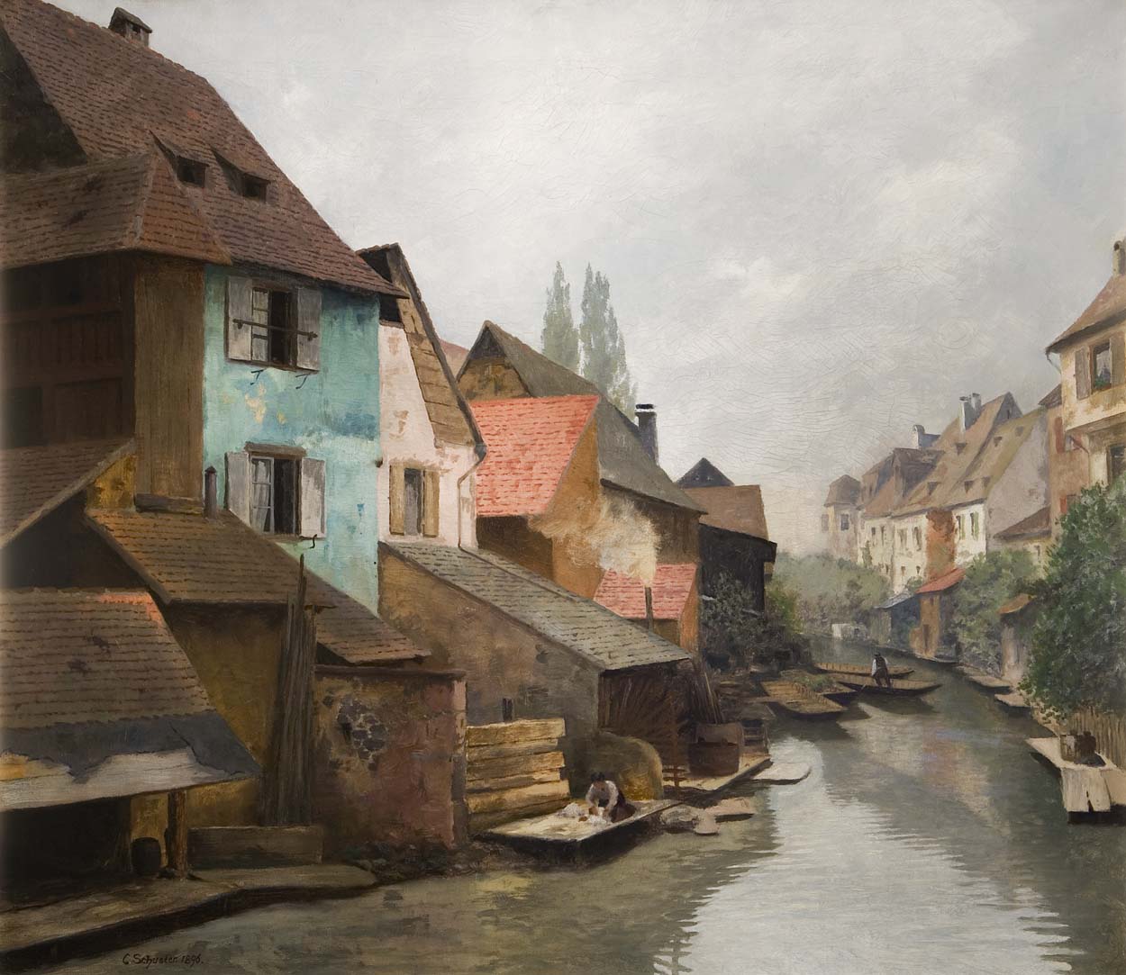 Karl Friedrich H Schuster is now an obscure artist, but his view of Fishermen’s Houses on the City Canal painted in 1896 shows another urban canal in steady decay, then only used by fishermen to keep their punts.