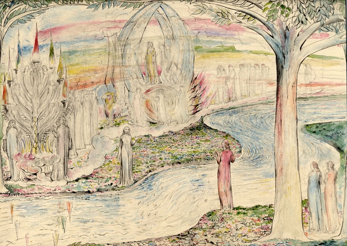 William Blake (1757–1827) was a British visionary painter and illustrator whose last and incomplete work was an illustrated edition of the Divine Comedy for the painter John Linnell. Most of his works shown in this series were created for that, although he did draw and paint scenes during his earlier career. I have a major series on his work here.
