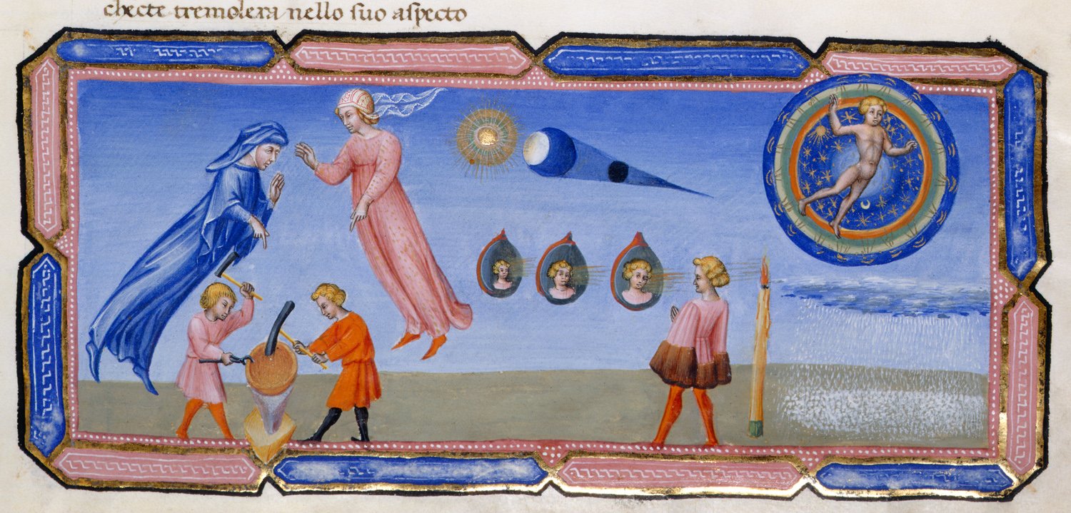 At the time, popular belief was that God had covered Cain with thorns after he murdered his brother Abel, then exiled him to the moon, where those thorns formed the dark patches. Beatrice tells Dante that understanding the heavens needs more than just physical observation and reason, and requires deeper spiritual insight. Her metaphysical explanation is that the moon’s luminosity varies over its surface in the same way that the brightness of the stars vary.