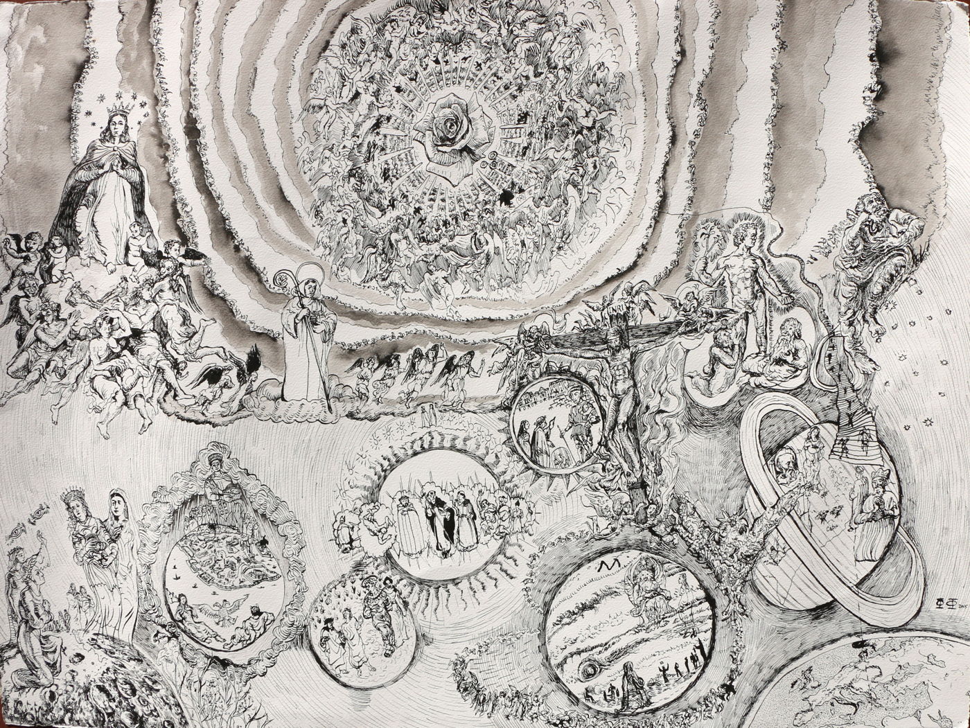 Over the last seven months, I have travelled with Dante in his Divine Comedy, showing paintings and prints to accompany his imaginary journey to the depths of Hell in Inferno, ascending the island-mountain of Purgatory, and finally up through the realms of the planets and stars to Paradise.
