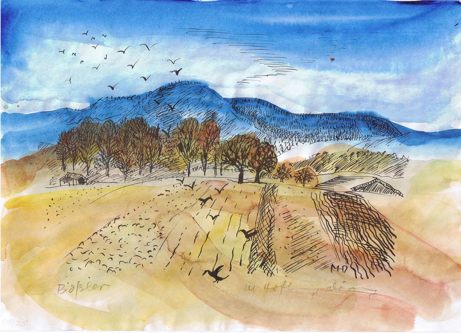 My final painting appears to be another straightforward landscape with crows, in Margret Hofheinz-Döring’s Boßler, Swabian Alps from 1981. There’s still something faintly worrying about those birds, though.