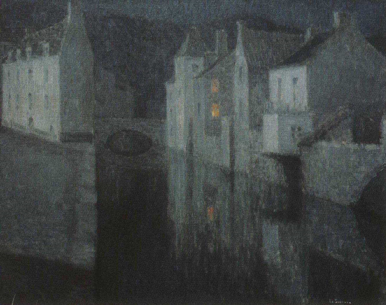 For this ghostly nocturne of the River in the Moonlight, Quimperlé, from about 1910, Le Sidaner visited this town in Brittany, in the far north-west of France. The perspective projection is unusual in giving the impression that the river is flowing down quite a steep gradient, and as usual its streets are deserted.