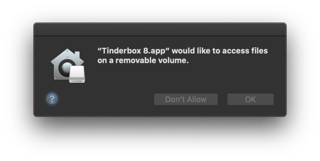 So long as you don’t run macOS Catalina, this all works fine. There are different ways of linking folders on your external storage to your internal startup volume, and if you want it’s not hard to link a complete Home folder – that’s the power and flexibility of macOS at work. Standard apps like iTunes/Music and Photos also make it simple to keep large libraries externally, and many users have to. The snag is that, according to Catalina’s new privacy protection, anything on a removable volume, which inevitably means all external storage, is treated as different, and non-sandboxed apps may have to be given special permission to access it. What was previously a neat and trouble-free arrangement now becomes a series of exceptional cases, tedious dialogs, and the occasional intransigent failure.