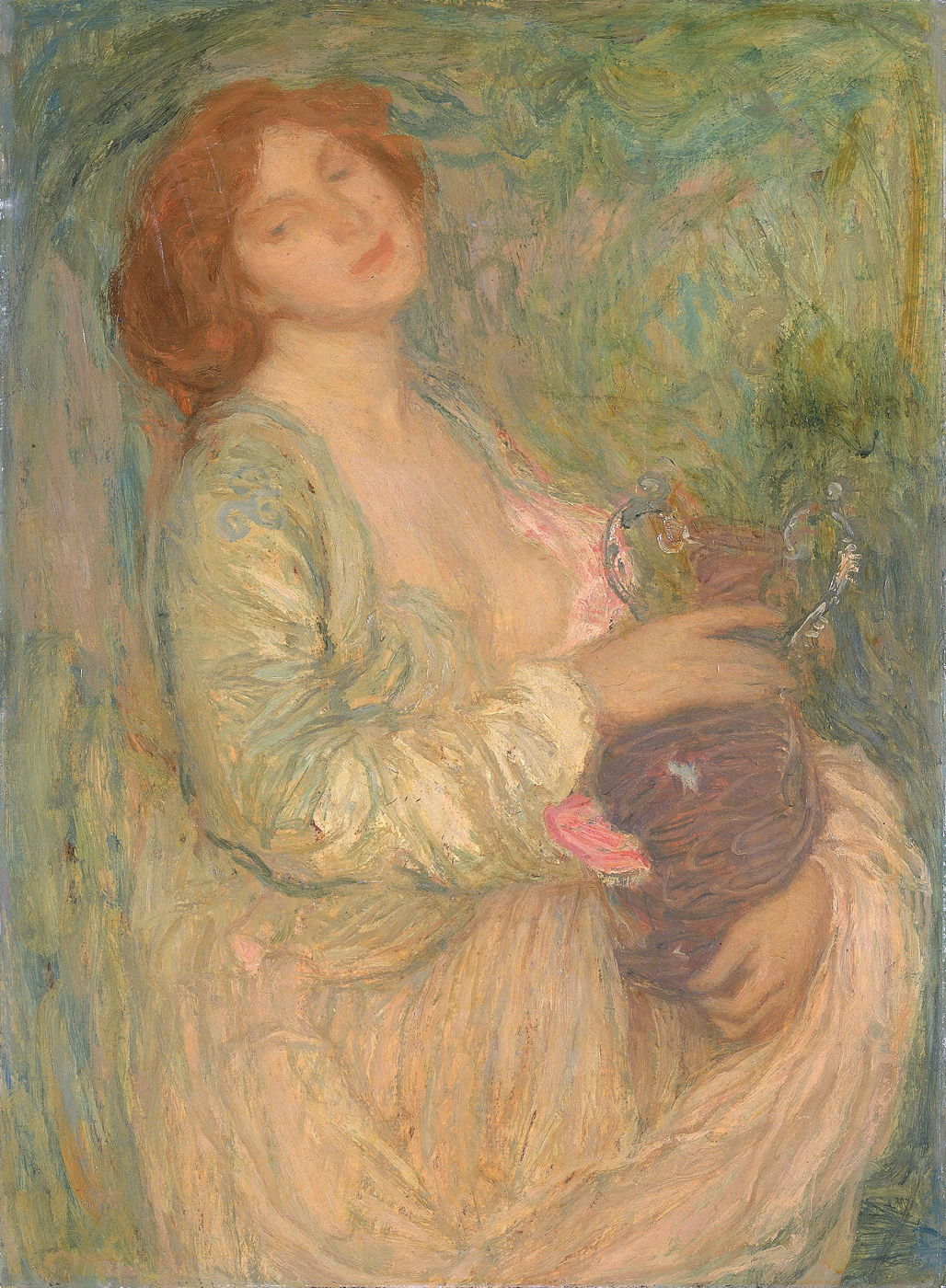 Portrait of Miss Ella Carmichael (1906) could easily have been titled Boredom: the sitter rests her head on the heel of her left hand, looking full of ennui. The clue to this may come from the painting (or print) behind her, which shows a couple out walking together in a wood. Perhaps this was less of a portrait than an ad for a partner.
