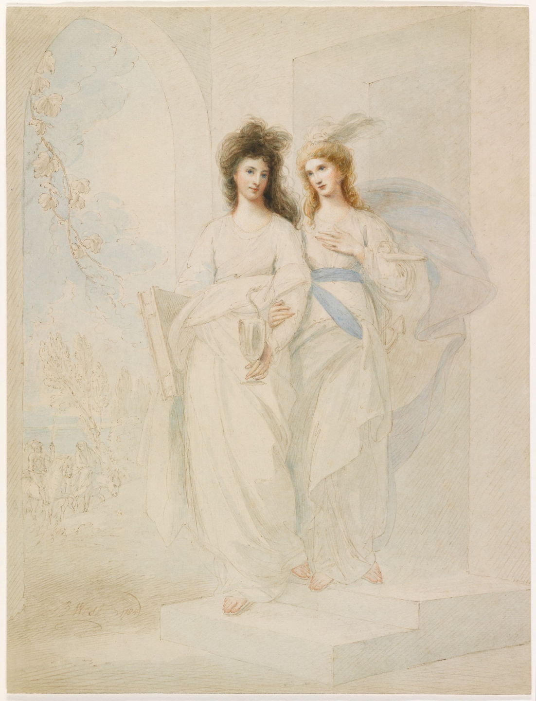 He appears to have been skilled in watercolour as well as oils, but strongly preferred the latter for his finished works. This beautiful watercolour study of Fidelia and Speranza is dated to 1784, although it seems to have been a study for his earlier oil painting of Fidelia and Speranza (shown in the previous article) which is dated to 1776.