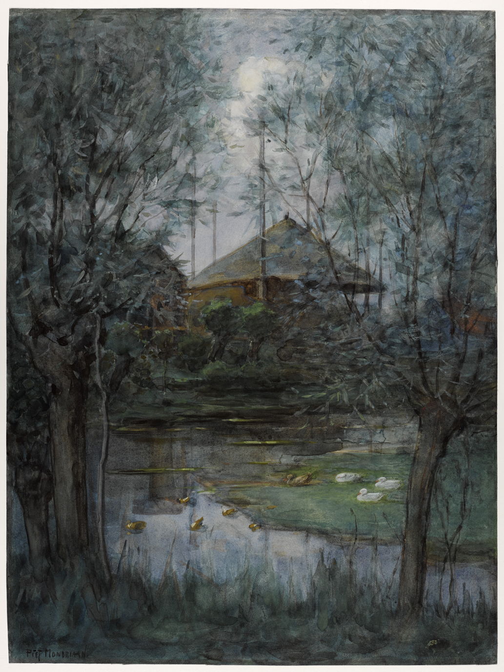 These included some gentle nocturnes, such as this view of Oostzijdse Mill on the River Gein by Moonlight from about 1903, which he painted in oils.