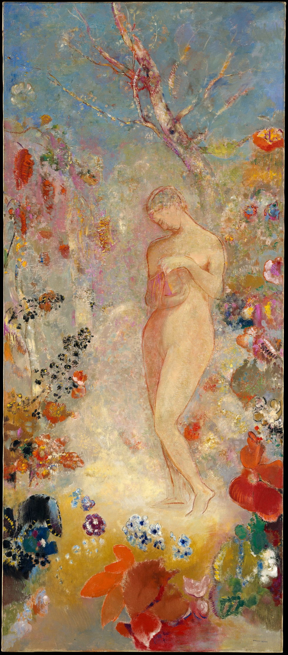 Redon was strongly influenced by Japonisme, as were many artists in France at that time, but unusually by Asian Buddhist art in particular. His Buddha from 1904 sets the meditating Buddha at the foot of a great tree, into whose trunk he partly merges. Around him are more brilliantly colourful and imaginary flowers.