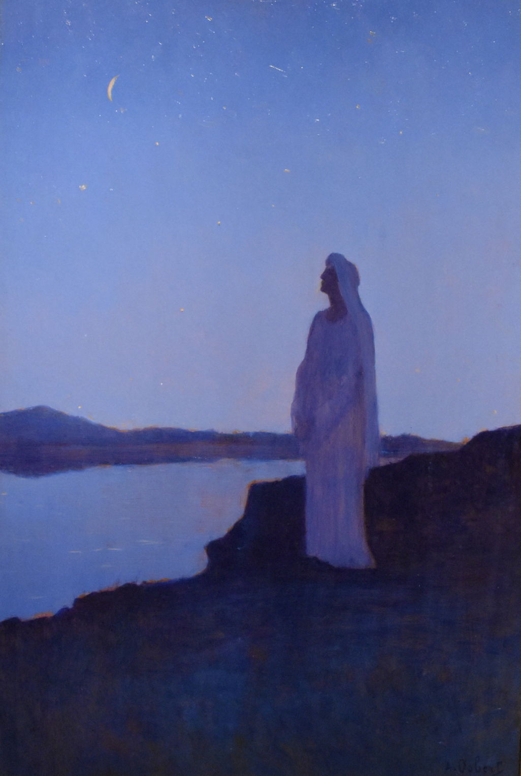 Alphonse Osbert’s Reverie in the Night from 1895 combines his favourite elements, including just a sliver of a moon, in a painting of profound tranquillity, which defies any detailed reading, just as Osbert wished.
