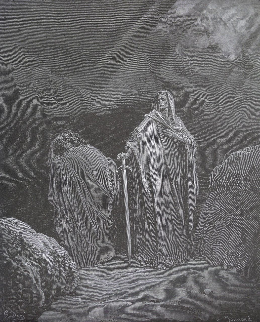 God fortels the final victory of his Son over them, and the renewing of all things; but for the present commands his Angels to make several alterations in the heavens and elements. Adam more and more perceiving his fallen condition heavily bewails, rejects the condolement of Eve; she persists, and at length appeases him: then, to evade the curse likely to fall on their offspring, proposes to adopt violent ways, which he approves not; but conceiving better hope, puts her in mind of the late promise made them, that her seed should be revenged on the Serpent, and exhorts her with him to seek peace of the offended Deity, by repentance and supplication.