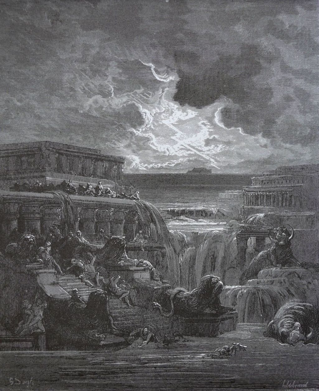 Eve’s lamentation. Adam pleads, but submits: The Angel leads him up to a high hill; sets before him in vision what shall happen till the Flood.