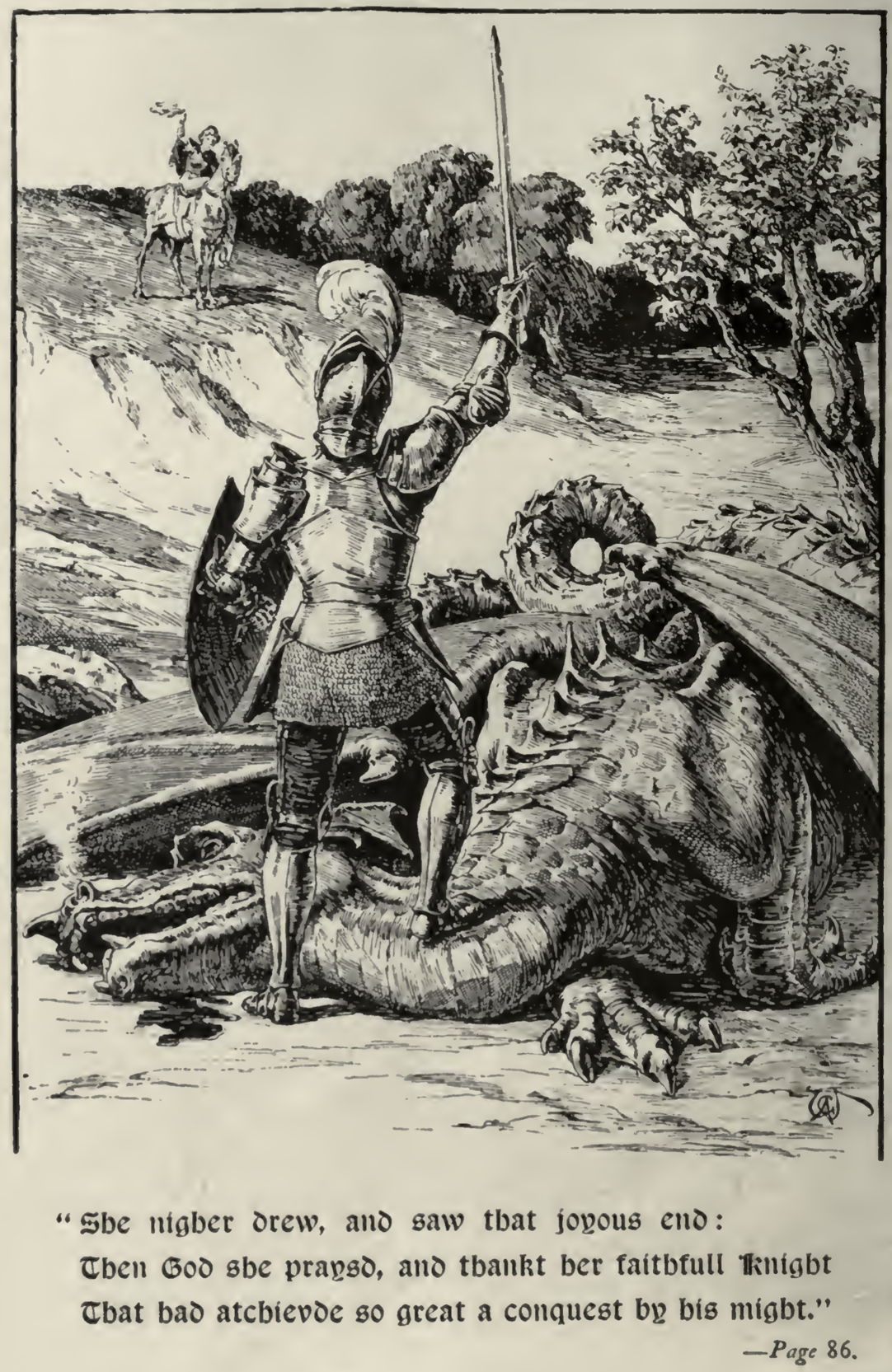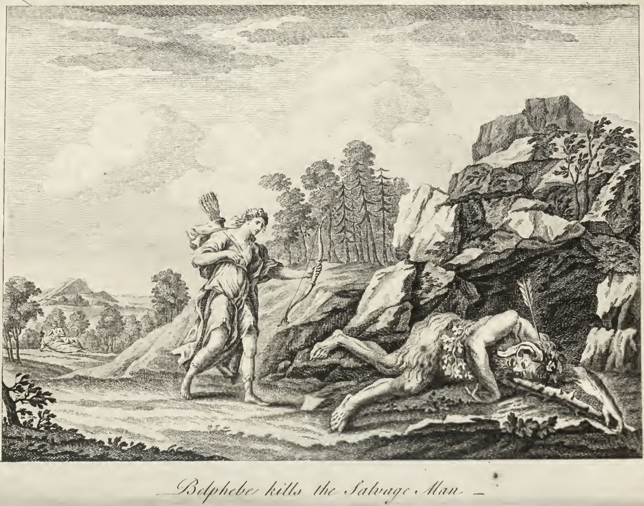 His drawings appear to have been conventional, as reflected in this scene in which Belphebe Kills the Salvage Man.