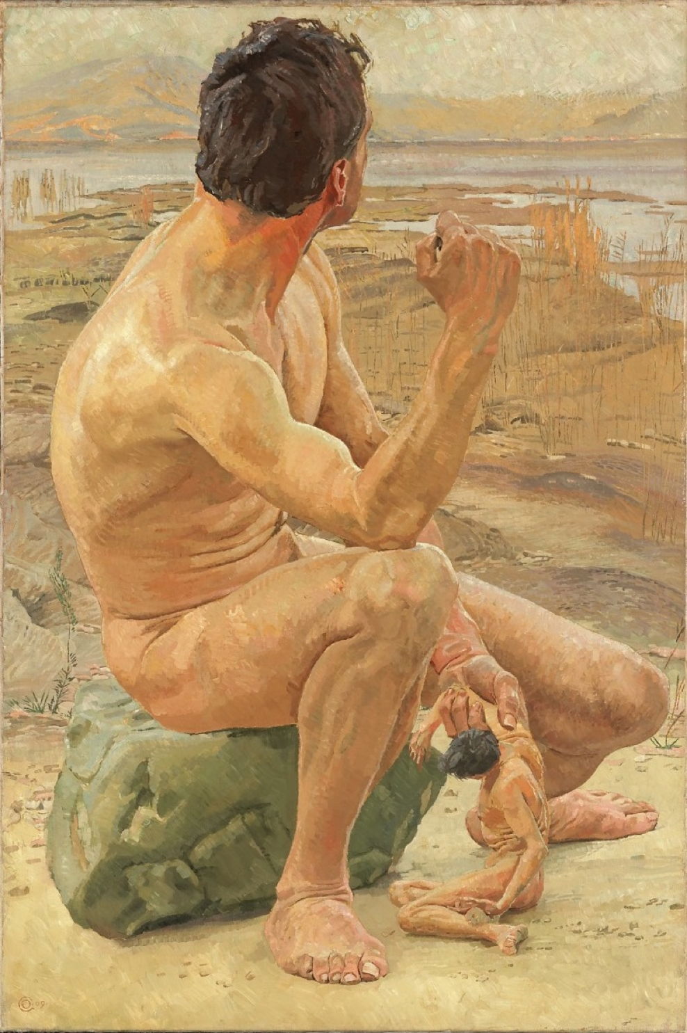 In Otto Greiner’s Prometheus from 1909, the Titan appears to have become the creator of mortal man, as he sits in the midst of a primaeval landscape.